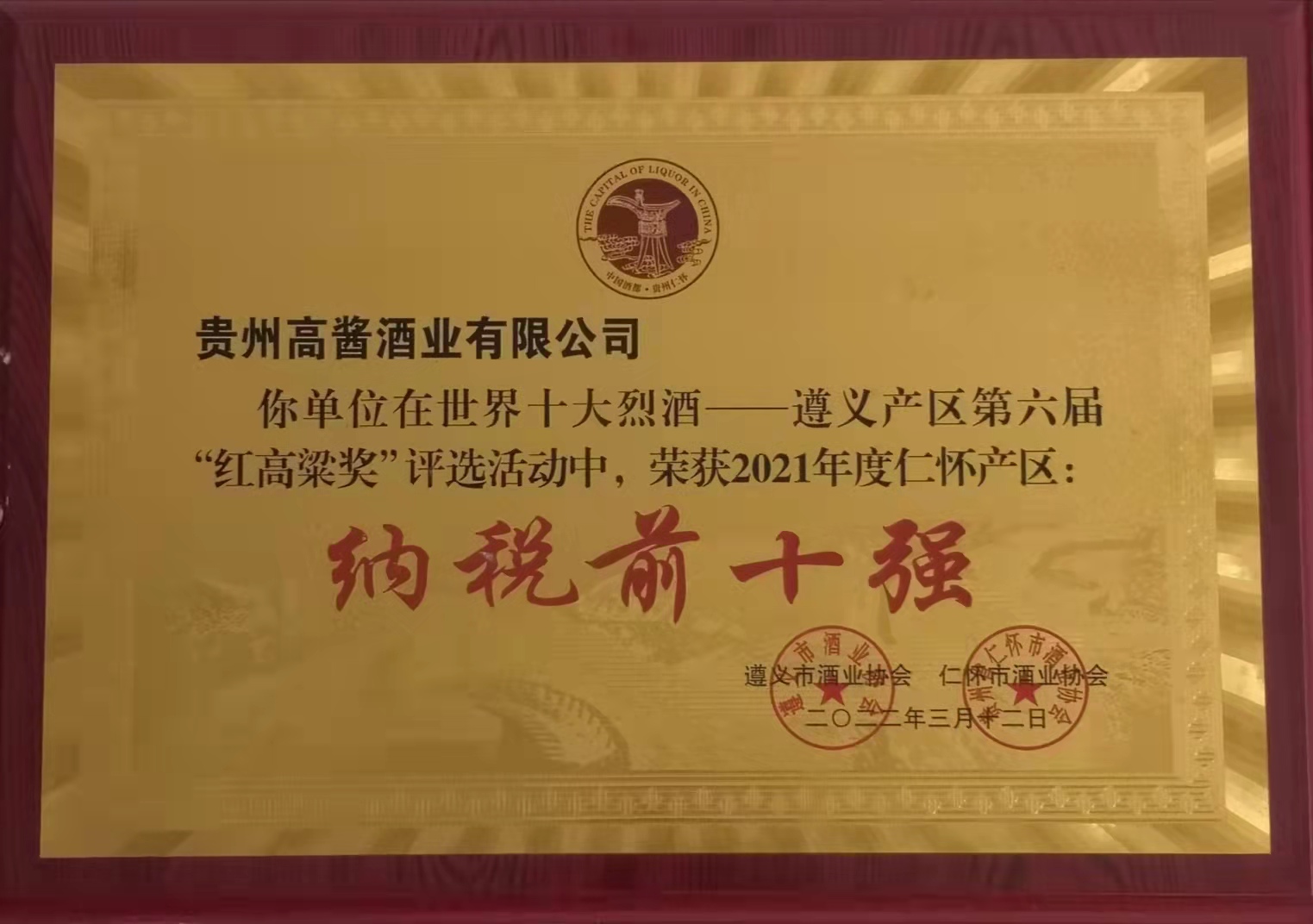 米兰体育app官网-米兰体育(中国)股份旗下高酱酒业坐落于贵州省仁怀市名酒工业园区。作为贵州省仁怀市酒业协会副会长单位、中国酒都仁怀白酒企业100强,高酱酒业目前已是贵州仁怀地区规模生产以上及主要纳税单位,2021年纳税额达到1.2亿元人民币。根据仁怀市酒业协会今年3月1日的公示,高酱酒业被评为世界十大烈酒——遵义产区第六届“红高粱奖”2021年度仁怀产区纳税前十强企业。